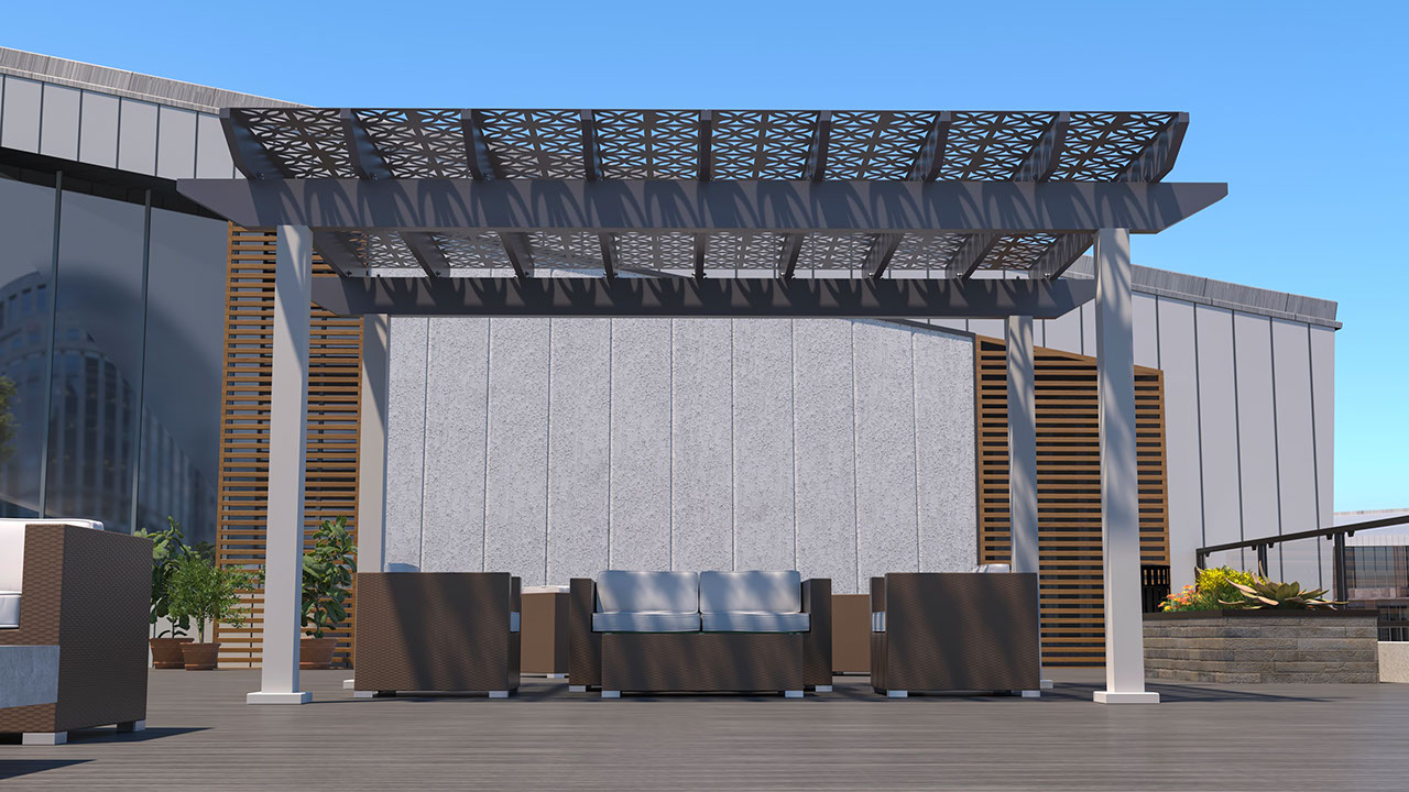 Manufactured from aluminum components with stainless steel hardware, Trex Shade panels are available in multiple patterns and finished in a super durable powder coat engineered for exterior applications.